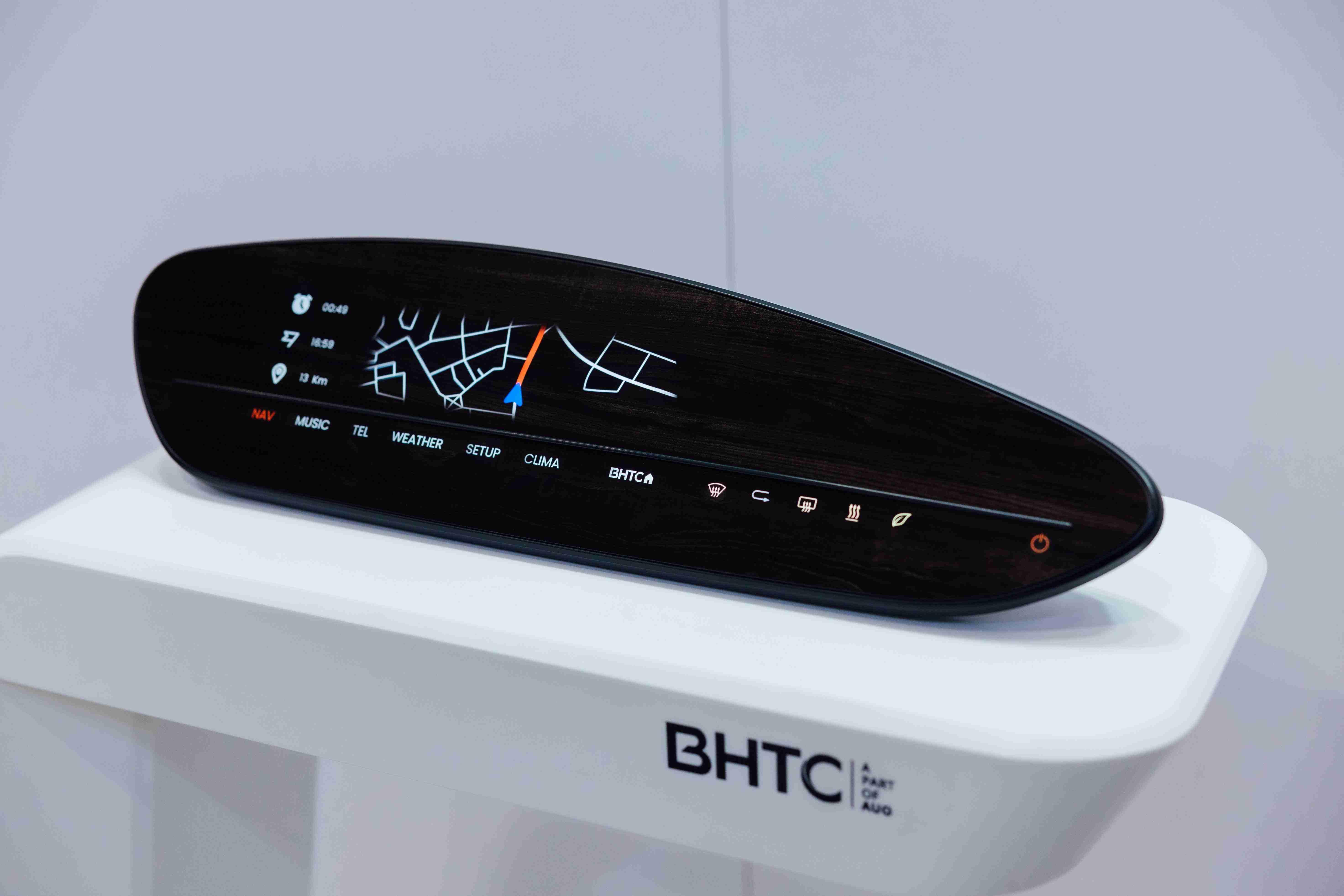 BHTC的木纹车用显示器(Display Behind Wood)将无缝木质表面与显示器结合后,,可以融入车内设计中,,,提供驾驶优质的视觉效果,,,,加上其无边框的设计和亮度调控,,,创造更优质的车内体验。。