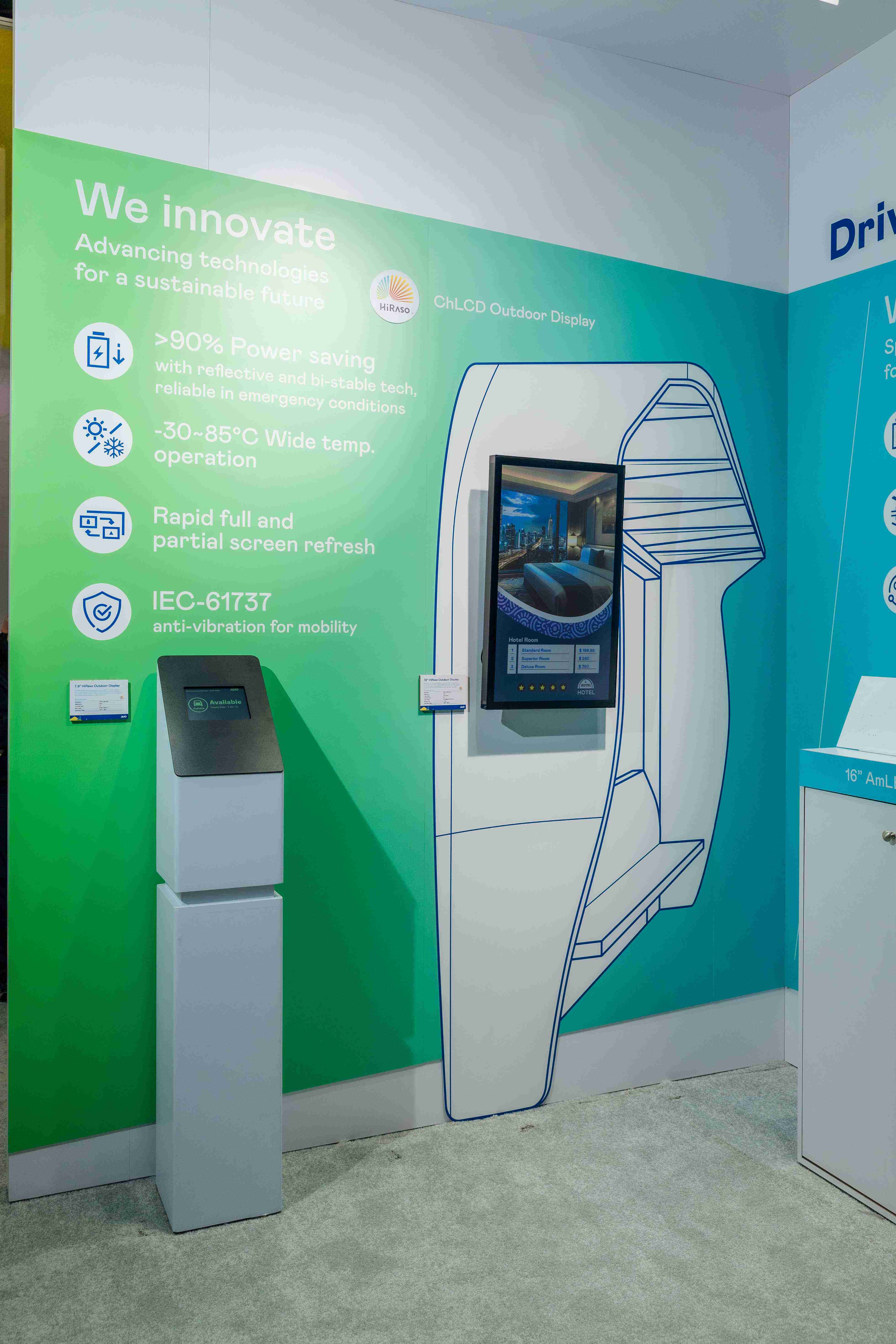 HiRaso胆固醇液晶显示器运用反射环境光线的方式,,呈现影像显示时零耗能的环保省电诉求,,,光线愈强愈能呈现绝佳的色彩饱和度及显示效果,,同时在摄氏-30度至85度间宽温的使用优势,,,,为户外电子看板的新首选。。