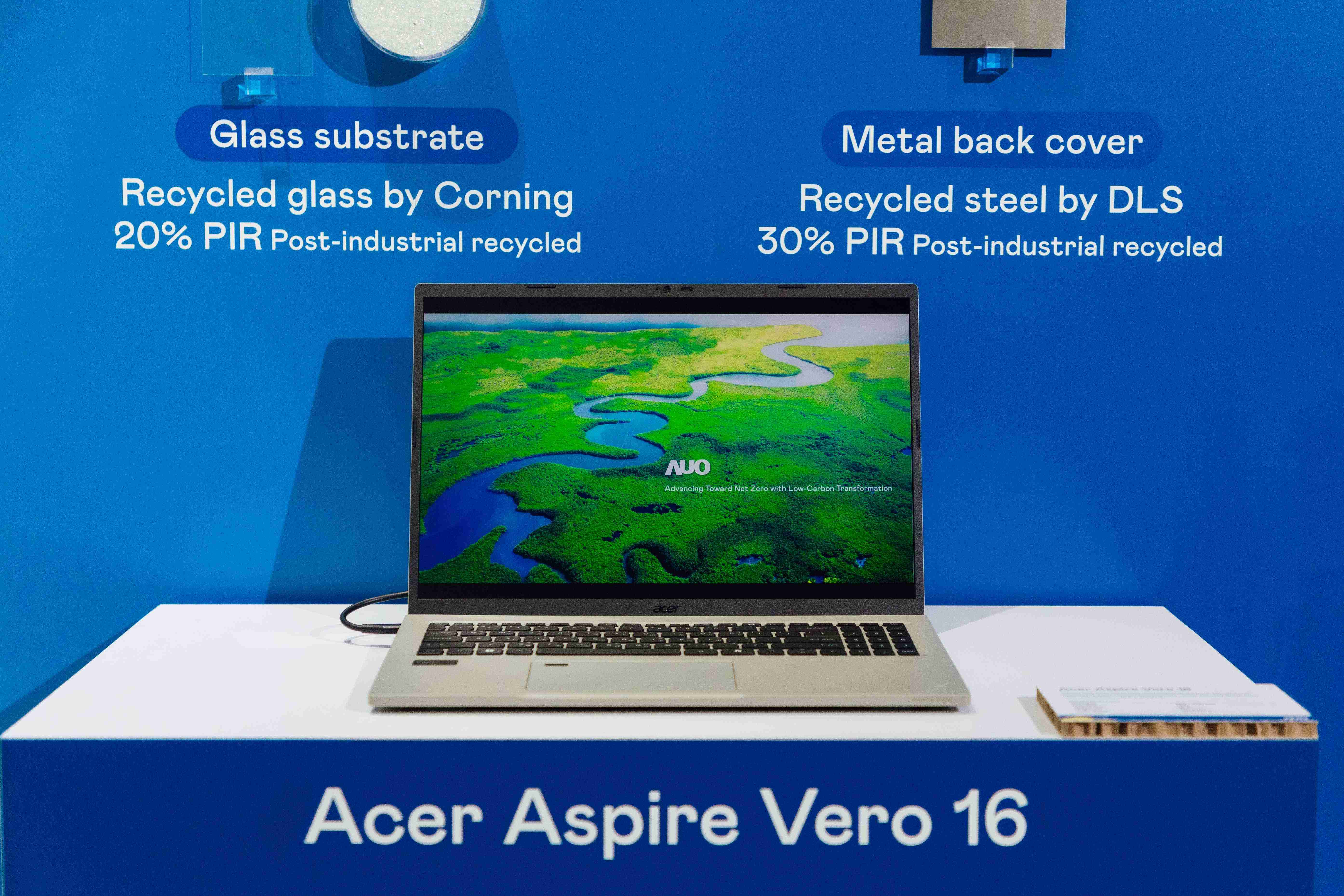 全球首款笔记型电脑采用NG大舞台100%绿电制造的面板,,,,结合PCR外亦使用工业后回收材料(PIR),,,,例如回收玻璃和金属,,,减少对环境的影响。。。。