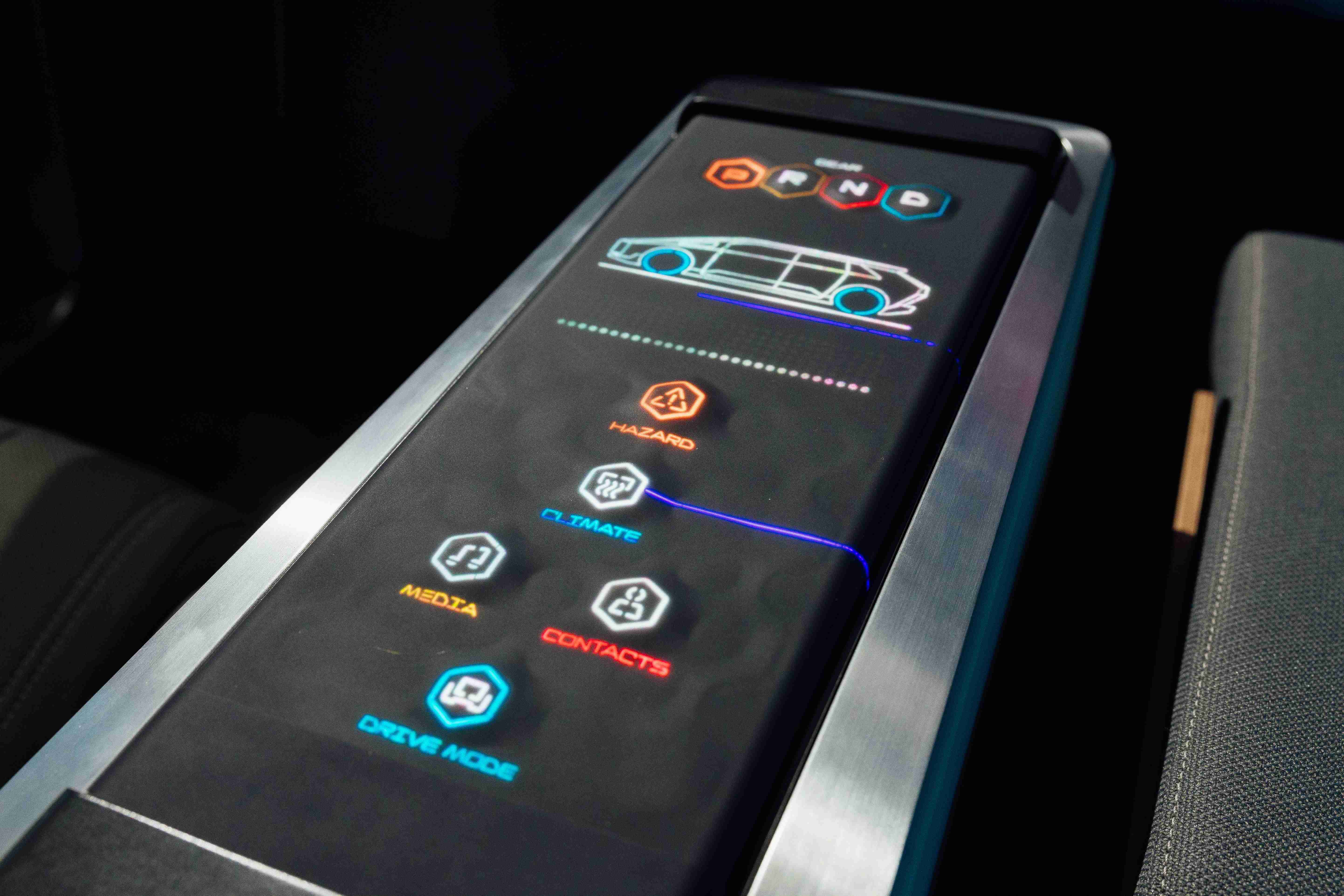 NG大舞台光电以人性化的设计引领直觉式的人机互动,,,,透过多变形态中控显示(Morphing Center Control)、、、、隐藏式智驾介面(Foldable Cruise Pilot)等解决方案,,,,让乘用者依据自身需求调整、、、控制座舱内所需功能。。