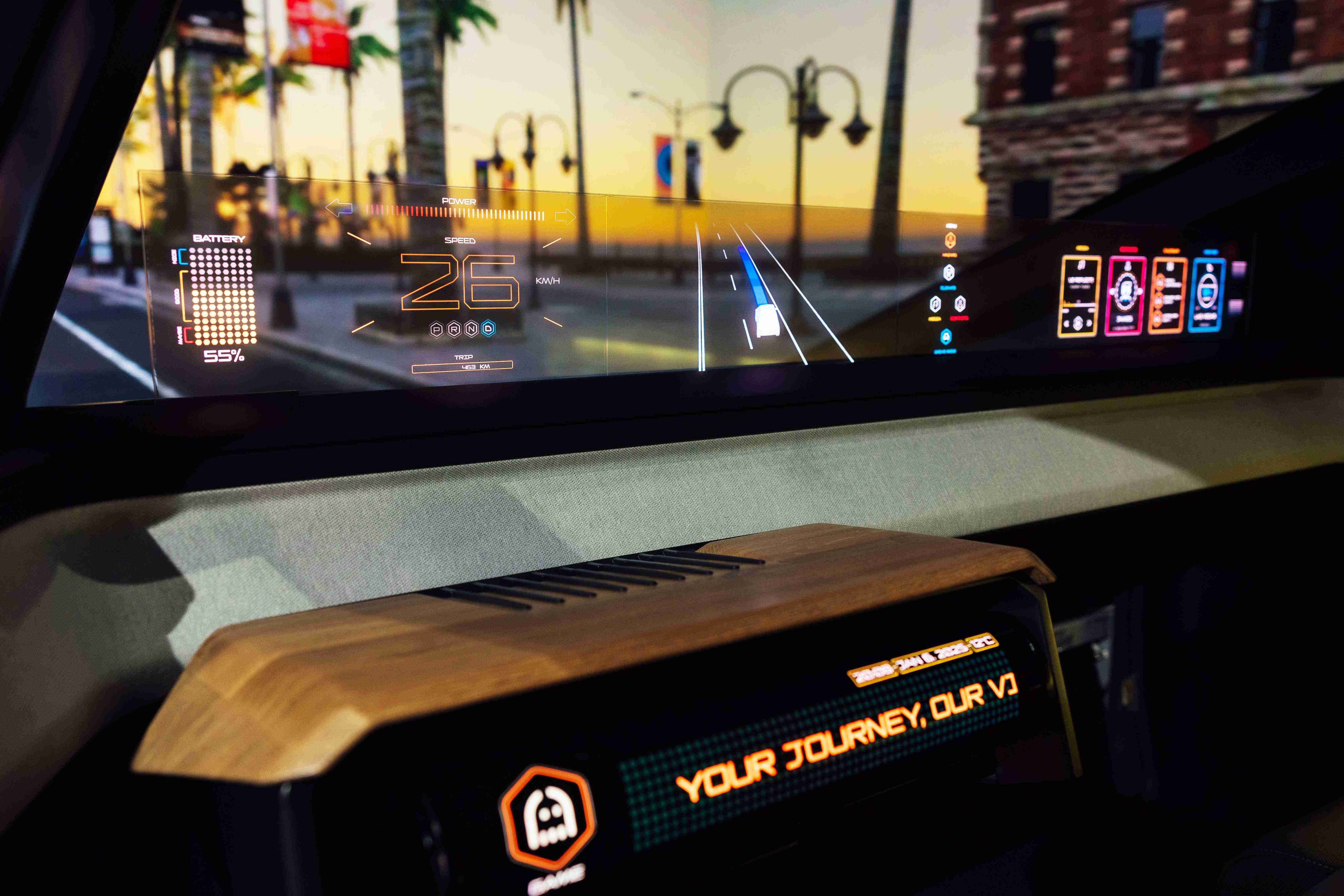 NG大舞台Smart Cockpit 2025 在车头及车尾搭载合作伙伴Ennostar开发的互动式矩阵显示器(Interactive Matrix Display),,,其突破传设计框架,,,利用优化的光源整合技术,,,,提供更高亮度与对比度的显示效果,,营造驾车者个性化风格并传递讯息。。