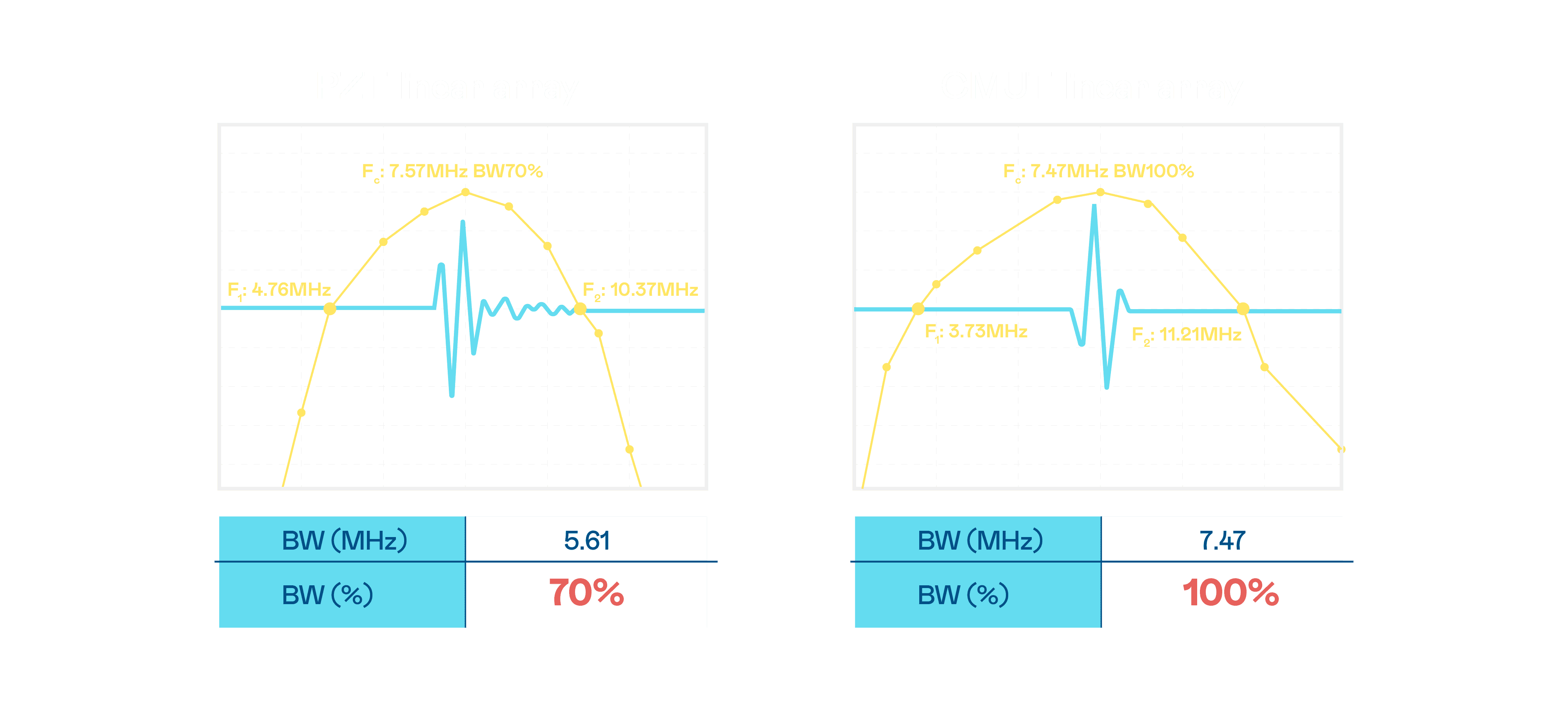 超音波影像的解析度高低,,,首先取决于探头能发出的讯号频宽。。NG大舞台 CMUT 可提供高清晰的超音波讯号,,提供高频宽、、、高灵敏度、、、影像纹理细节更高的超音波影像,,,协助医护人员缩短影像判读时间及利用精准的医疗影像进行诊断。。。